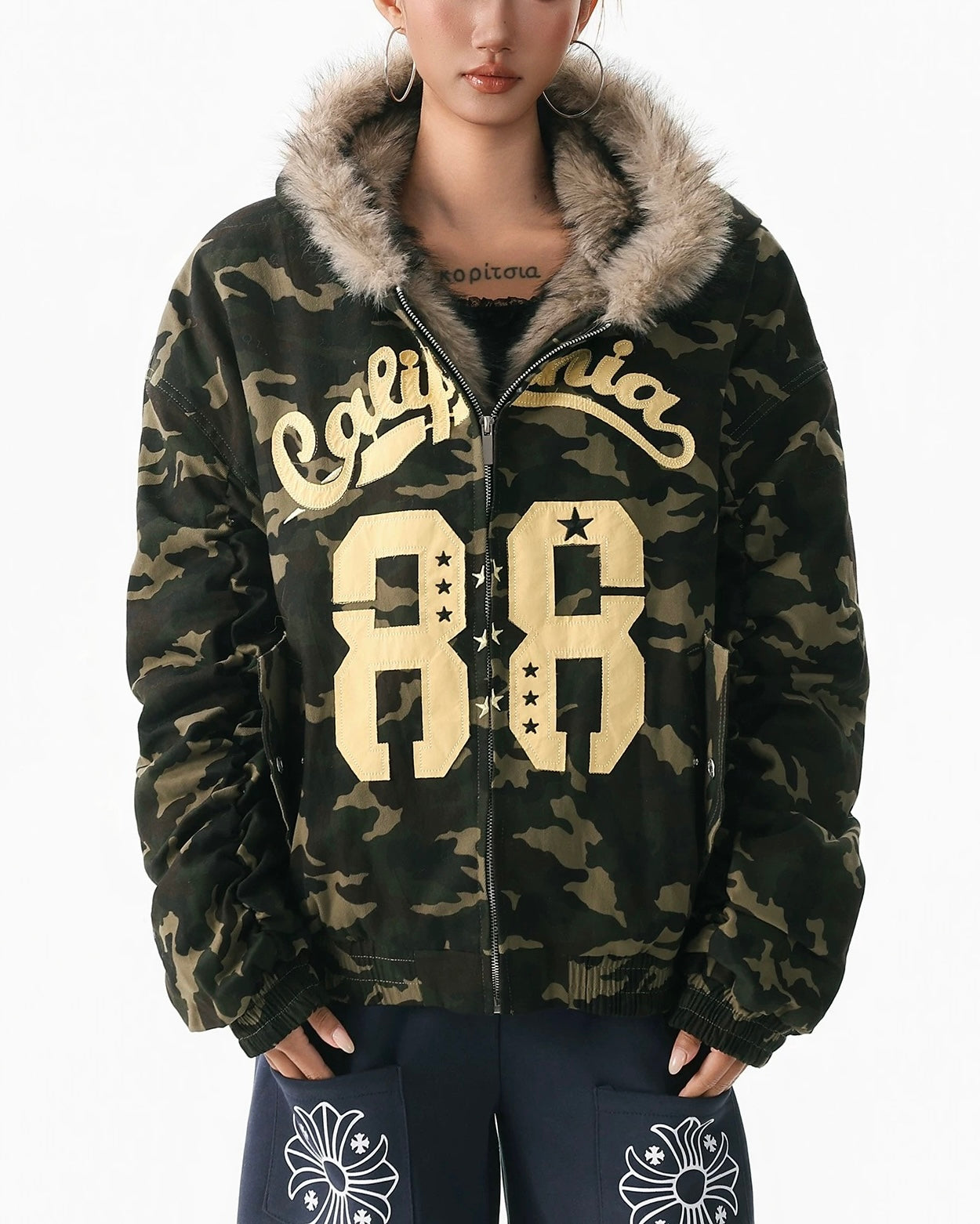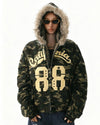 Camouflage plush hooded jacket