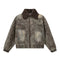 Distressed detachable fur collar coat