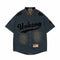Distressed letter embroidered short-sleeved shirt