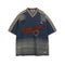 Washed embroidered denim short sleeves