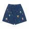 Cartoon embroidered denim shorts