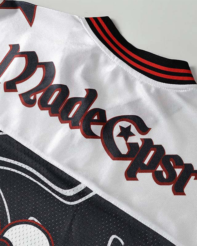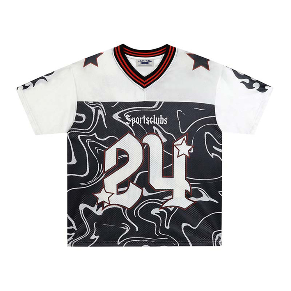 Color-blocked V-neck short-sleeved shirt