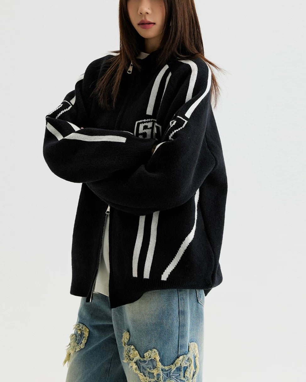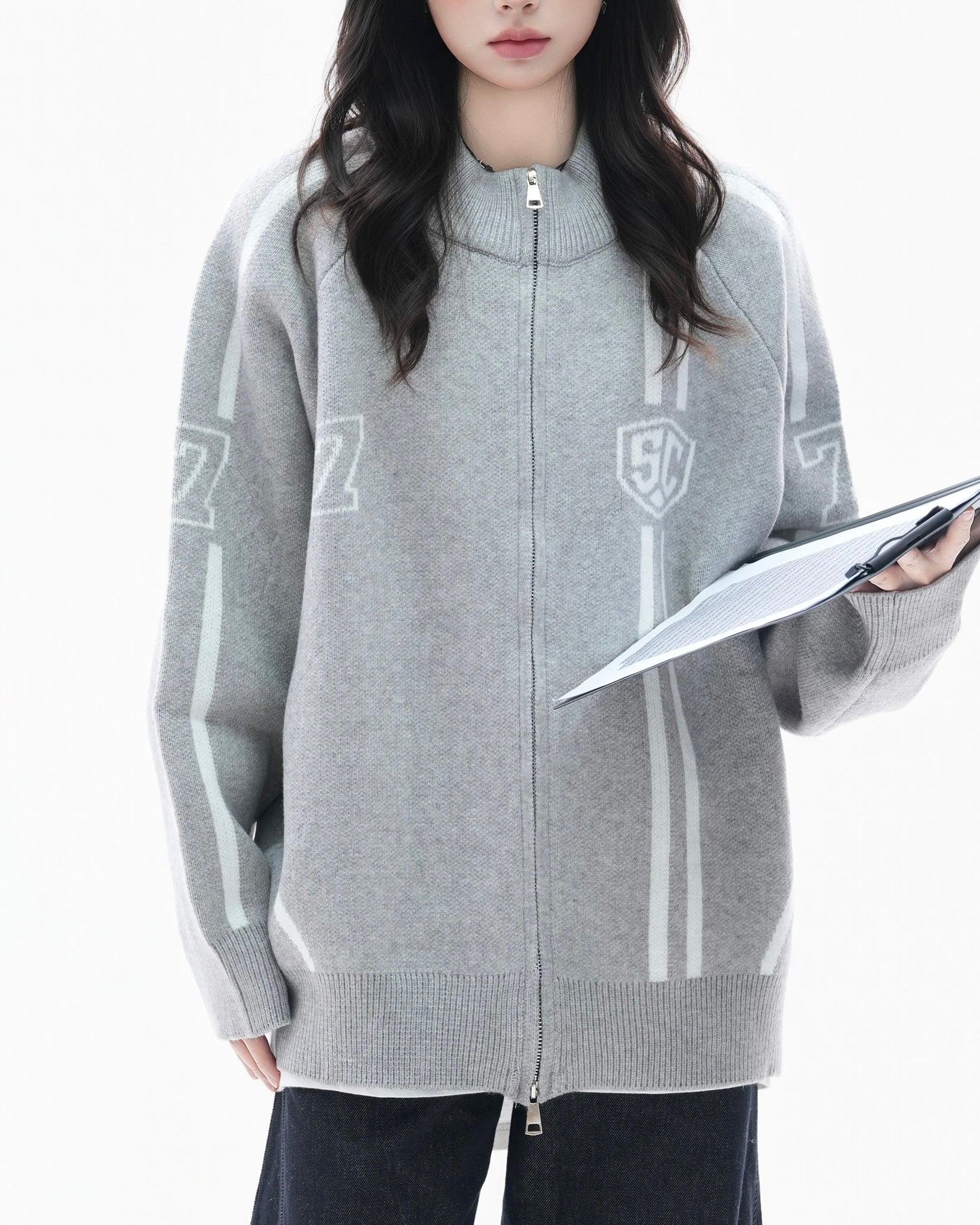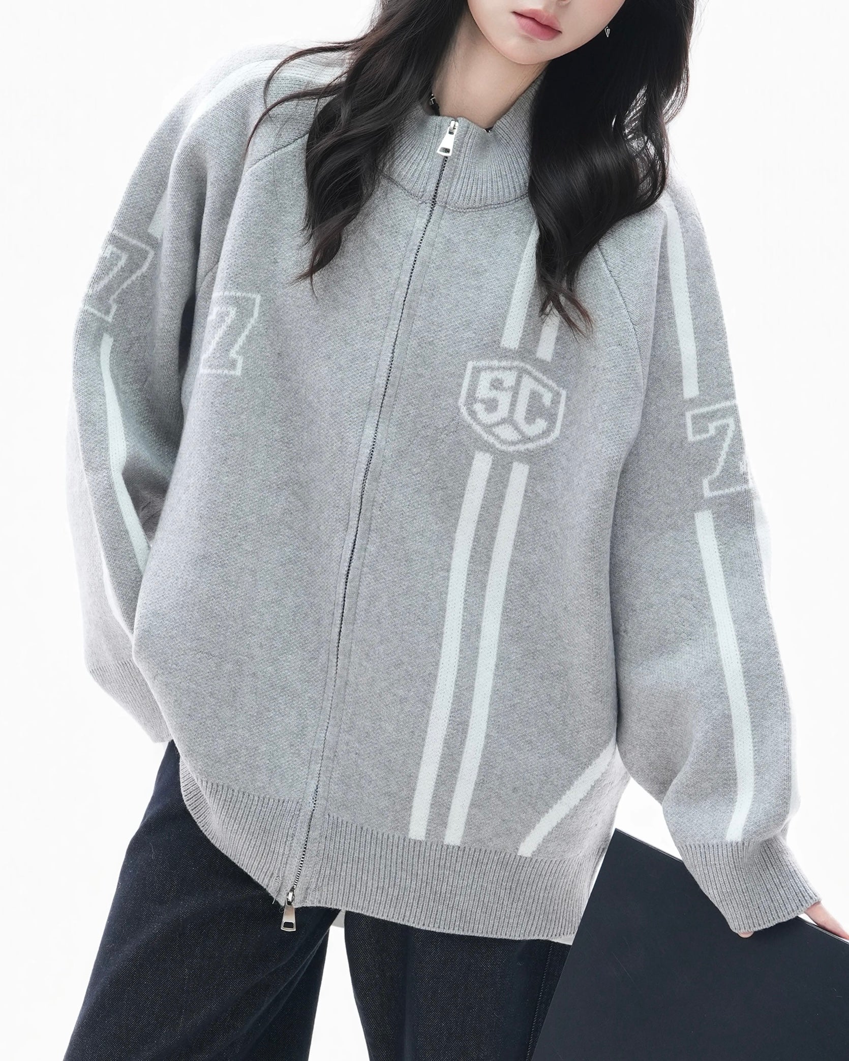 컬러 블록 니트 소재의 활용도 높은 코트