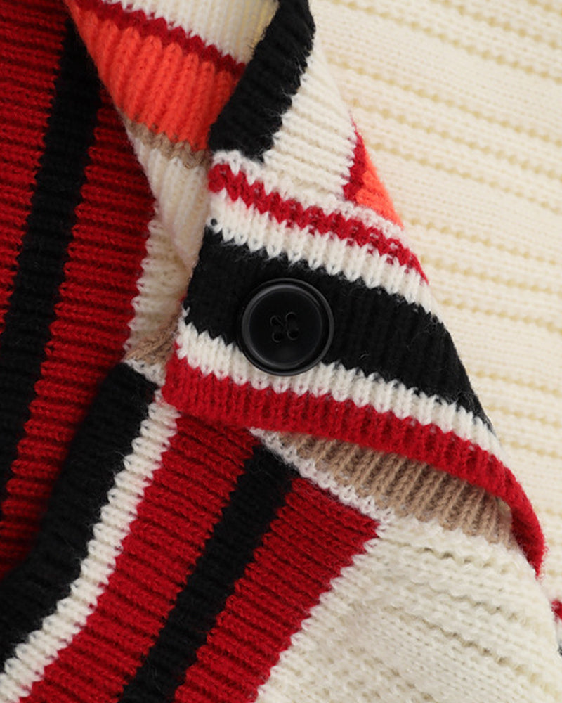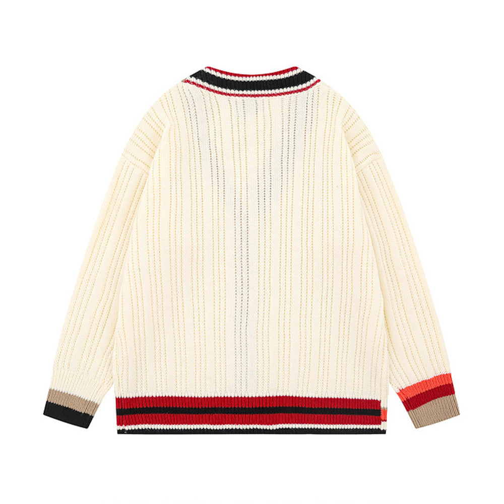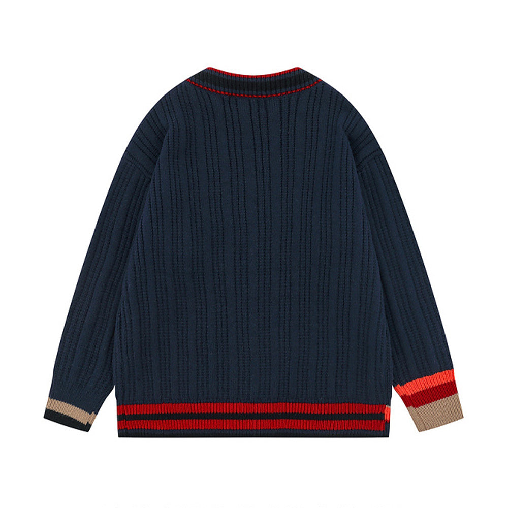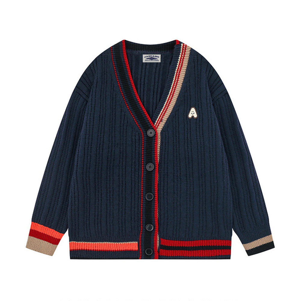 프레피 스타일 V넥 니트 재킷