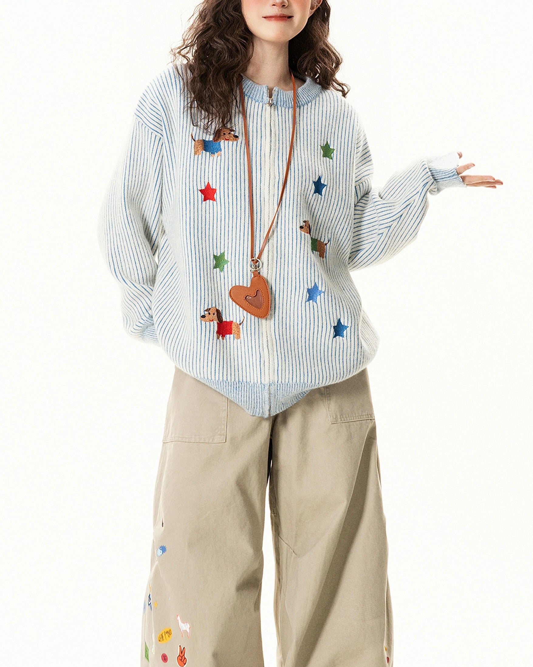 귀여운 강아지 자수 스웨터