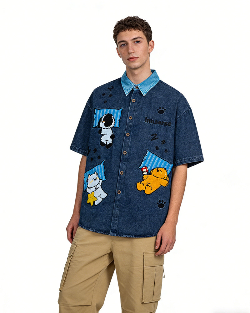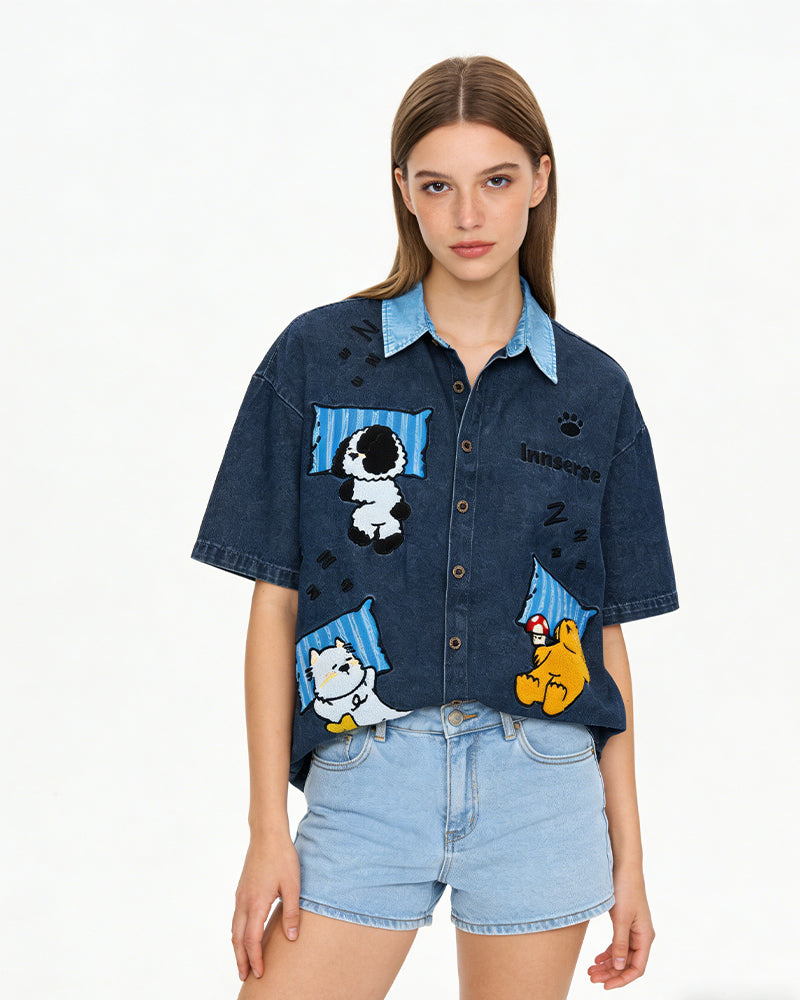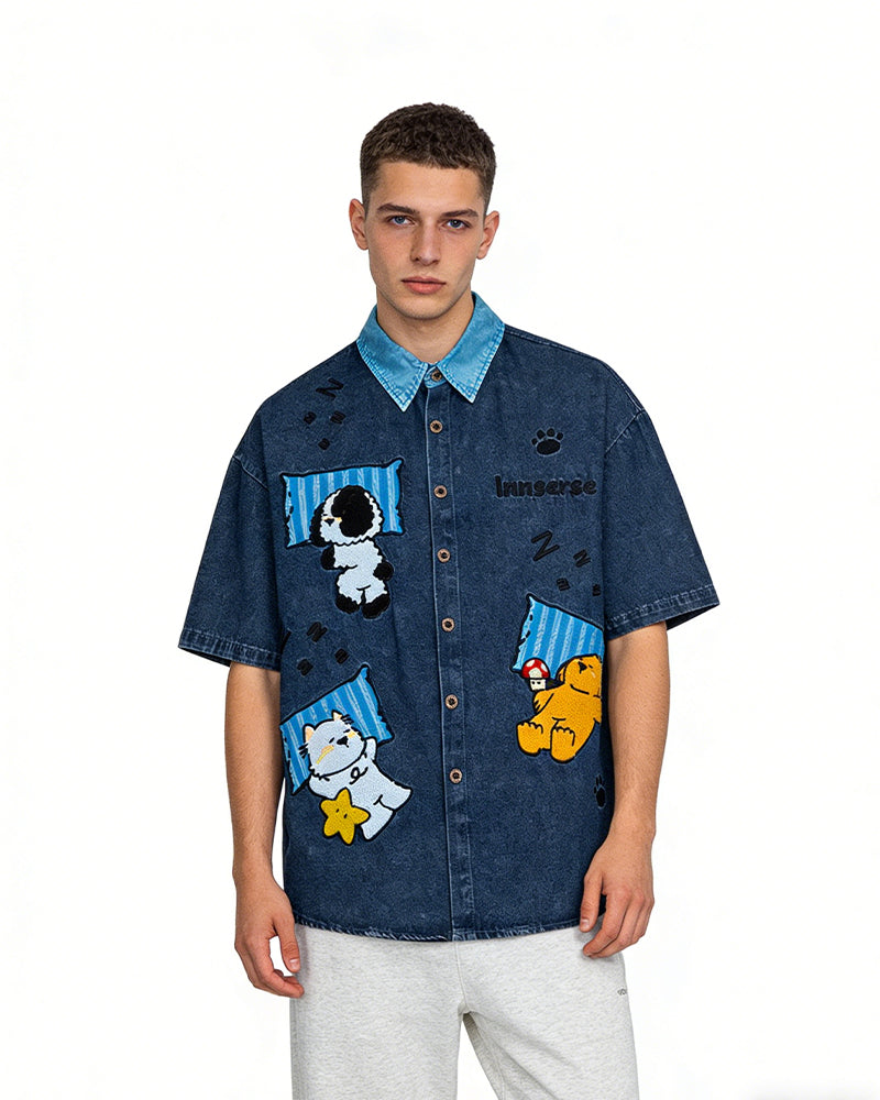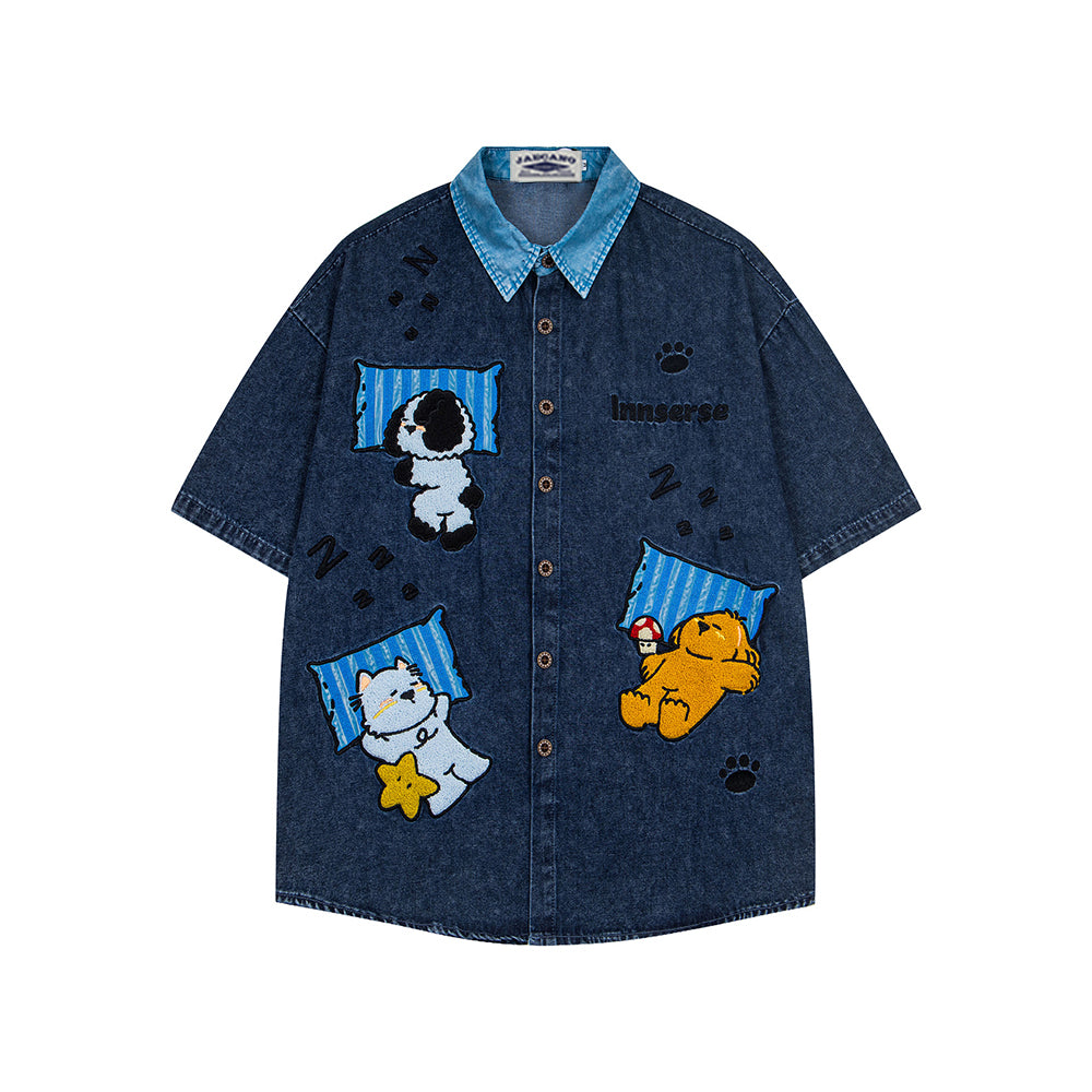 卡通刺綉短袖襯衫